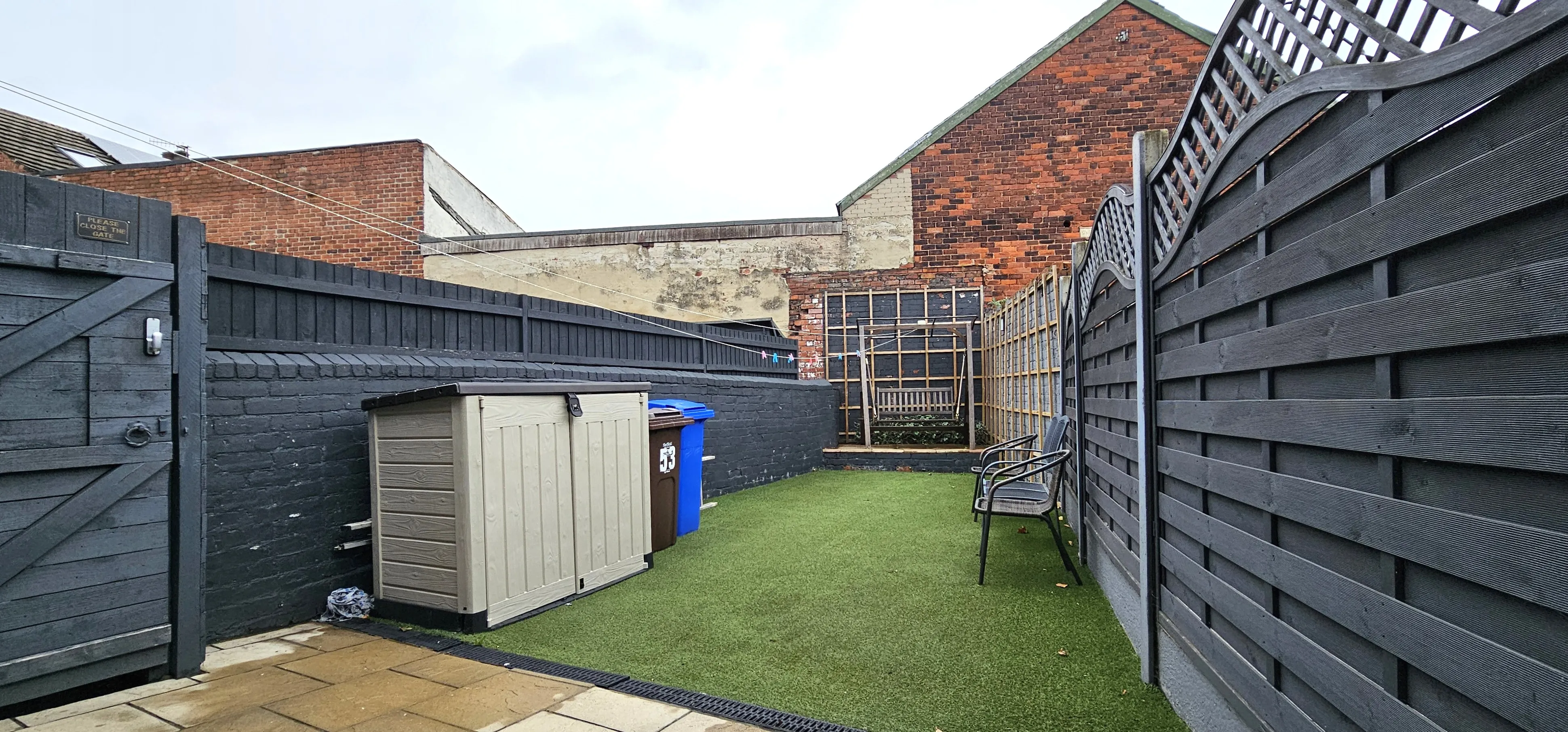 The outdoor space is equally impressive, featuring a private garden designed for low maintenance with a combination of paving and artificial grass, an ideal spot for social gatherings.