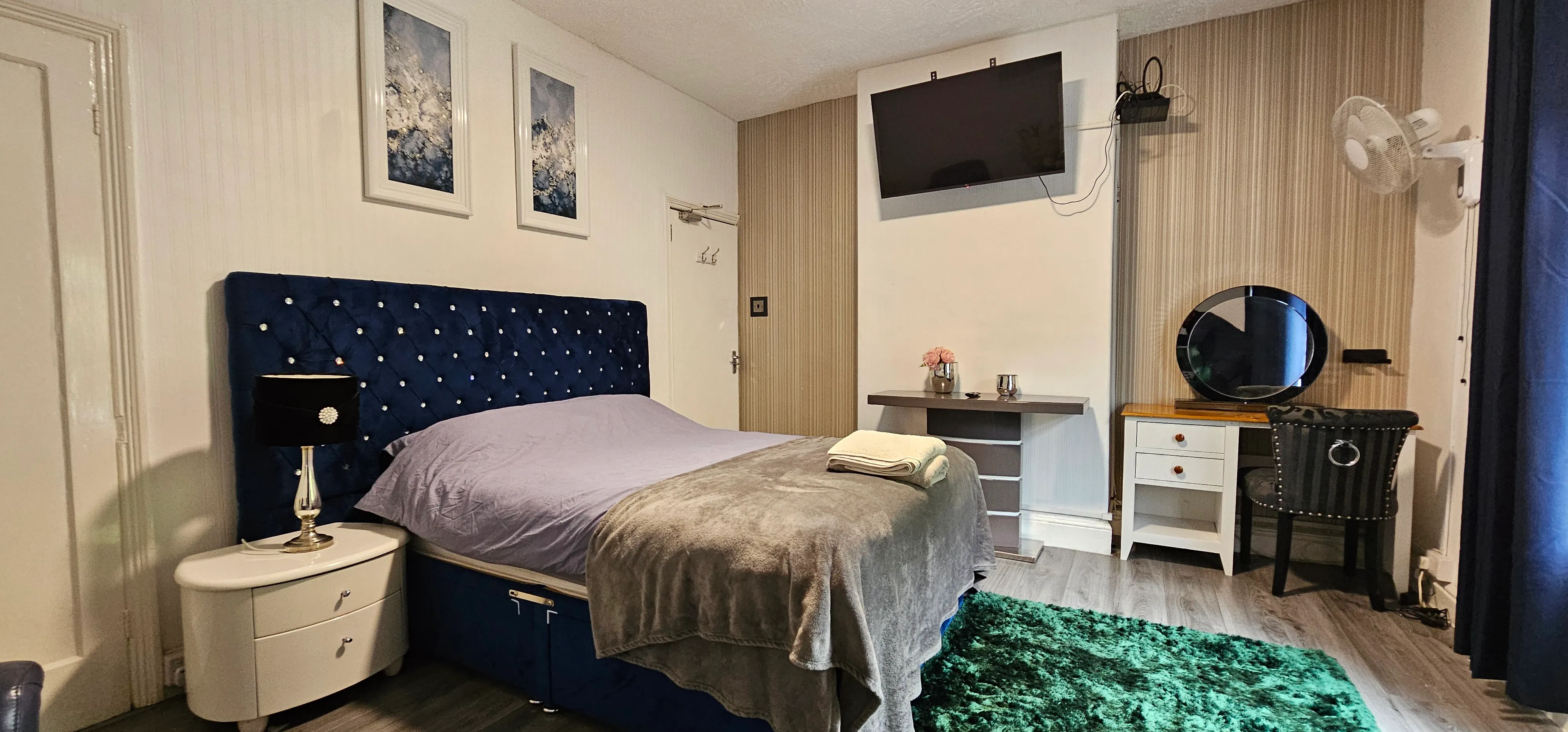 With two well-appointed bathrooms, this property ensures that all occupants enjoy amplefacilities, enhancing the overall living experience. The double room comesfully furnished with double bed, wardrobe, chest drawers, office desk and achair.